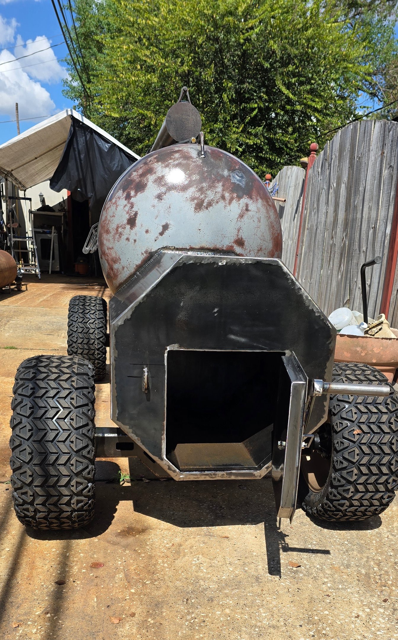In 2001, I started fabricating my first custom chopper, and shortly after that I made a second one. I've been fabricating trailers, motorcycles, and anything made from metal. In 2008 I started working for oil and gas as a NDT Technician. I traveled all over the world, but after 12 years I decided I was done being away from my home and family. Since then, I started making smokers. I don't advertise much; I just build and list. I build all of these alone.
